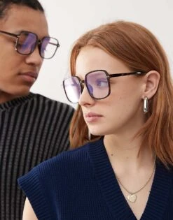 Reclaimed Vintage Unisex Oversized 70s Blue Light Glasses In Brown Tortoiseshell For Unisex