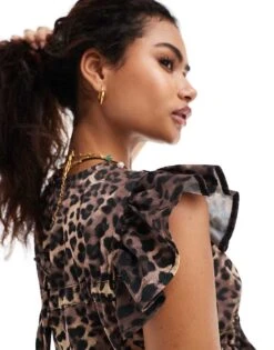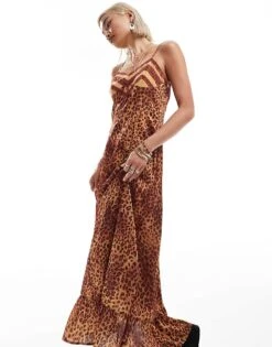 Reclaimed Vintage Maxi Slip Dress In Lepoard Print With Lace And Bow Details For Women Animal Print