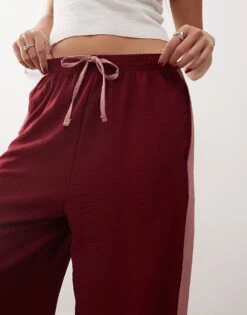 Reclaimed Vintage Wide Leg Trouser With Side Contrast Panel In Burgundy For Women