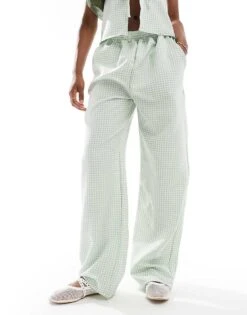 Reclaimed Vintage Pull On Trousers In Green Gingham For Women