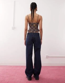 Reclaimed Vintage Pull On Trouser With Frill Bottom In Blue Gingham For Women Blue And White