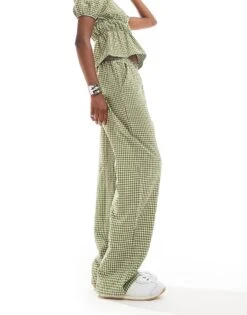 Reclaimed Vintage Unisex Baggy Trouser With Front Pleat Detail In Grey For Unisex Green