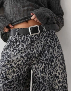 Reclaimed Vintage Snow Leopard Print Barrel Leg Trouser For Women