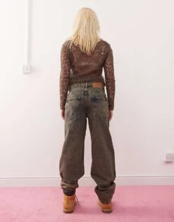 Reclaimed Vintage Unisex Barrel Leg Jean In Brown Wash For Unisex