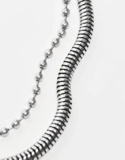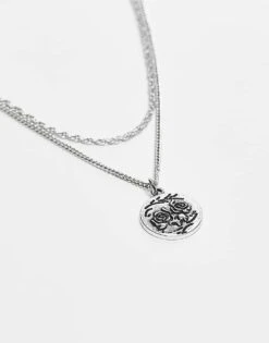 Reclaimed Vintage Unisex 2 Row Necklace With Pendant In Silver For Unisex