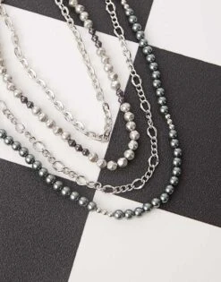 Reclaimed Vintage Ultimate Mixed Chain Layered Necklace In Silver For Women