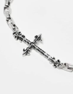 Reclaimed Vintage Unisex Chain Bracelet With Skinny Cross In Silver For Unisex