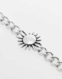 Reclaimed Vintage Unisex Chain Bracelet With Sun In Silver For Unisex
