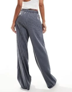 Reclaimed Vintage Wide Leg Trouser In Burgundy Pinstripe For Women