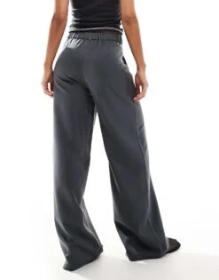 Reclaimed Vintage Wide Leg Smart Trouser In Charcoal For Women Grey
