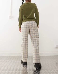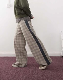 Reclaimed Vintage Wide Leg Tailored Trouser With Contrast Panels In Neutral Check For Women Multi