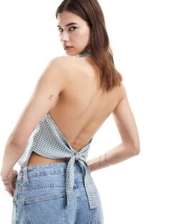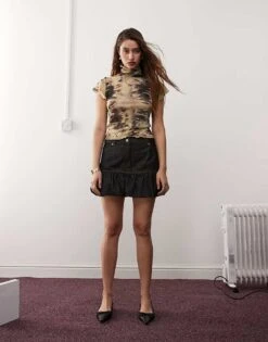 Reclaimed Vintage Knitted Wrap Tank With Floral Embroidery In Brown And Butter Yellow For Women