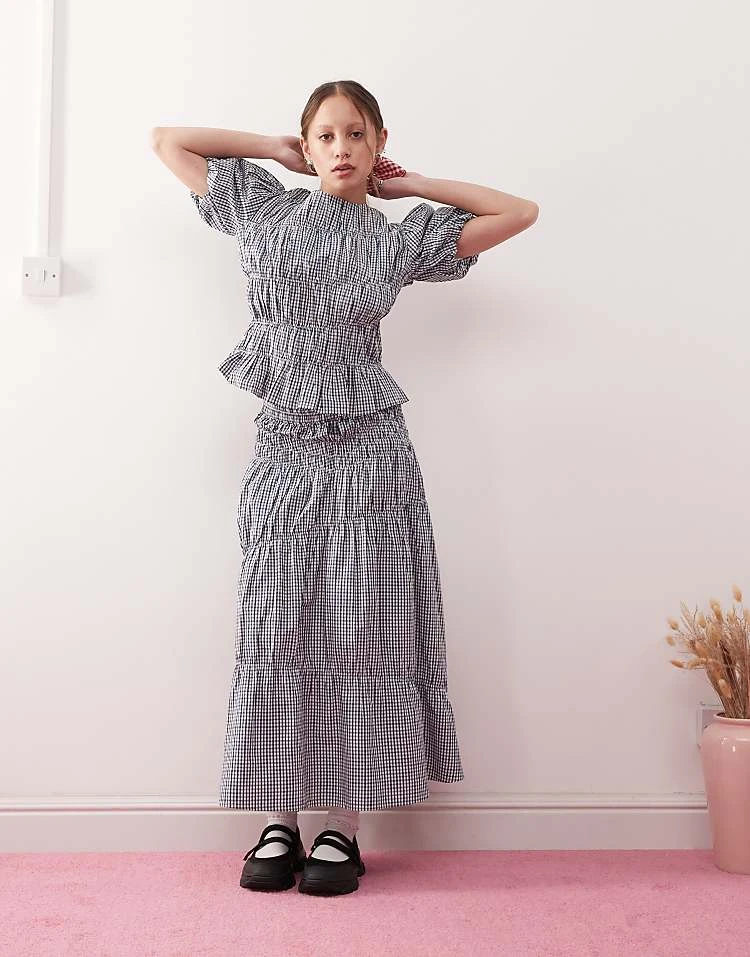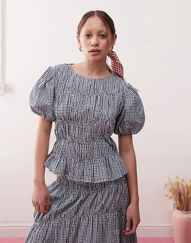 Reclaimed Vintage Co-ord With Ruching Detail In Blue Check