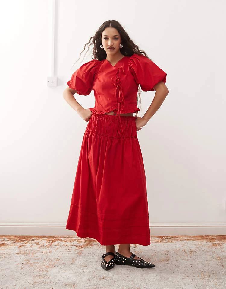 Reclaimed Vintage Cotton Co-ored Set In Red