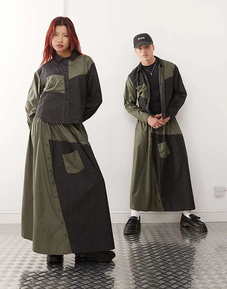 Reclaimed Vintage Genderless Co-ord In Spliced Pinstripe And Nylon