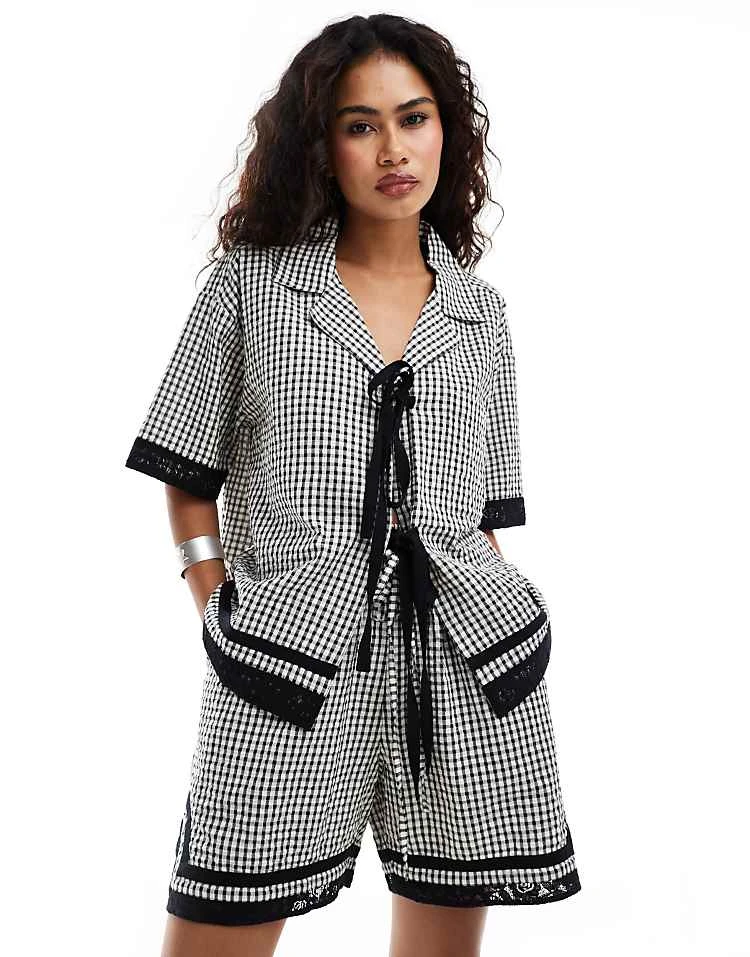 Reclaimed Vintage Gingham Co-ord With Lace Details