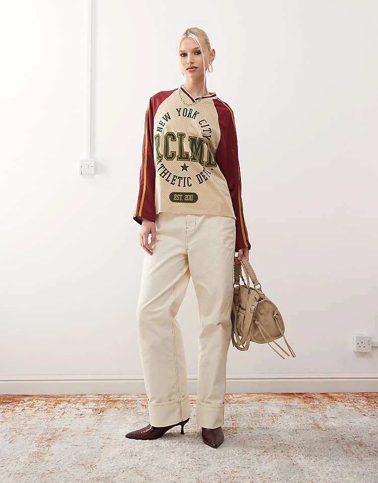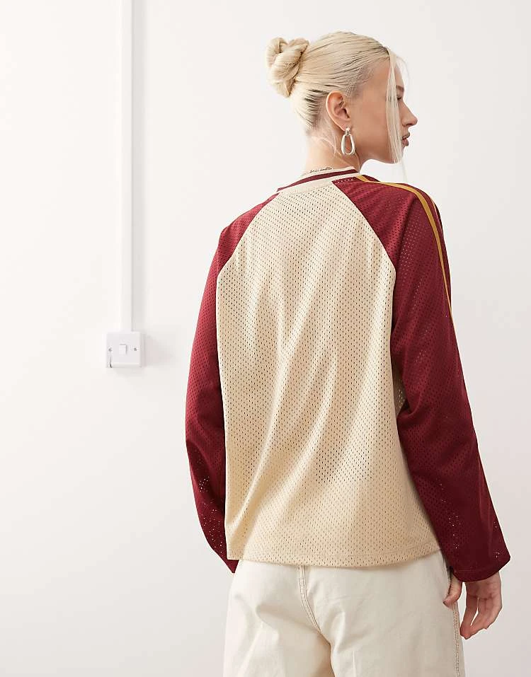 Reclaimed Vintage Oversized Long Sleeve Airtex Football T-shirt In Burgundy For Women