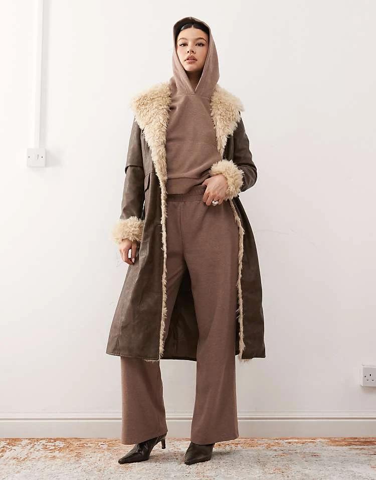 Reclaimed Vintage Supersoft Cosy Hoodie And Wide Leg Jogger Co Ord In Brown
