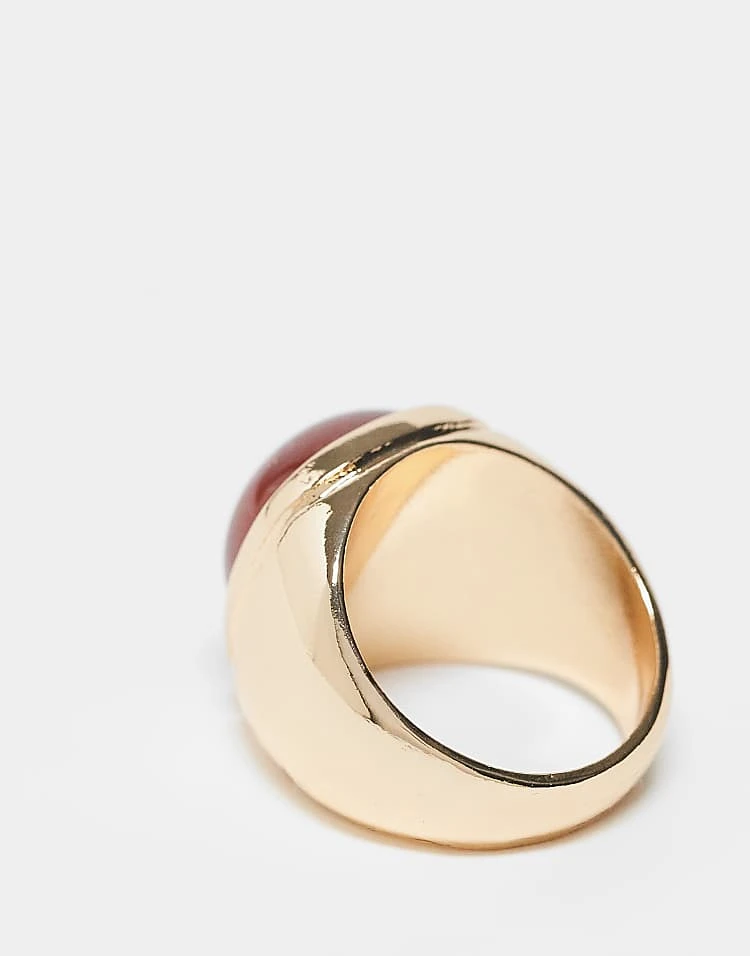 Reclaimed Vintage Unisex Gold Ring With Red Stone For Unisex Silver