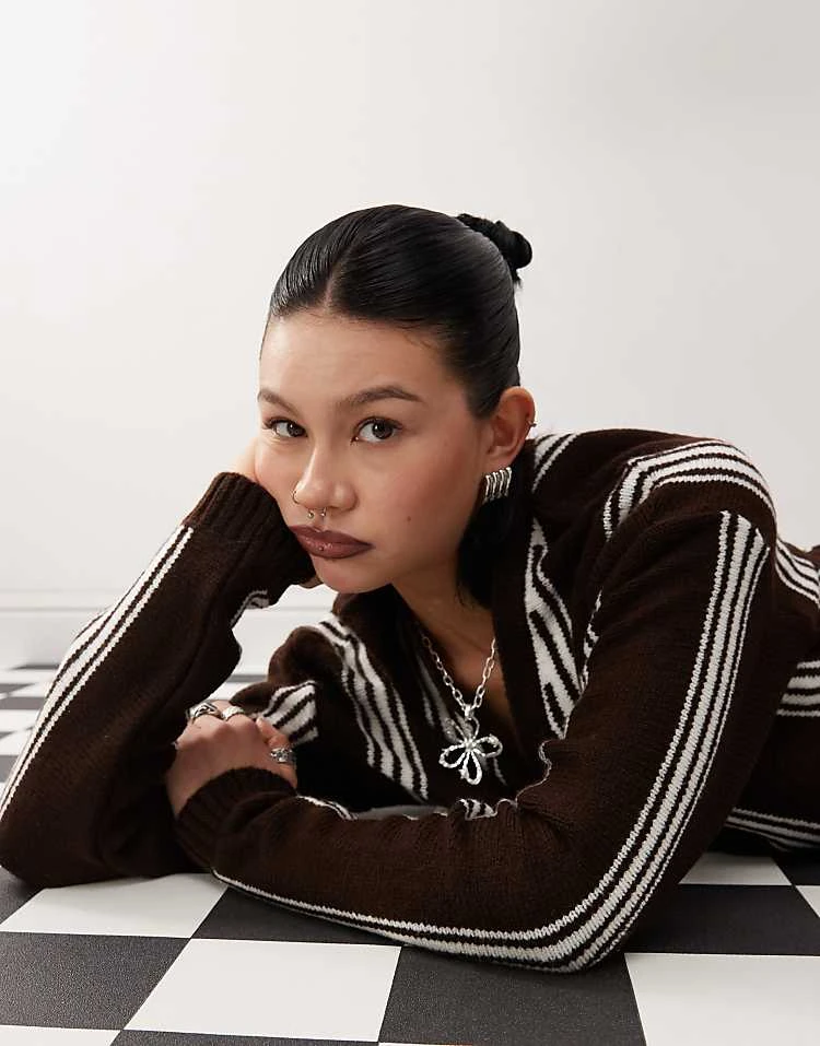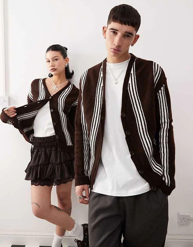 Reclaimed Vintage Unisex Knitted Stripe Relaxed Fit Cardigan In Chocolate For Unisex Chocolate Stripe