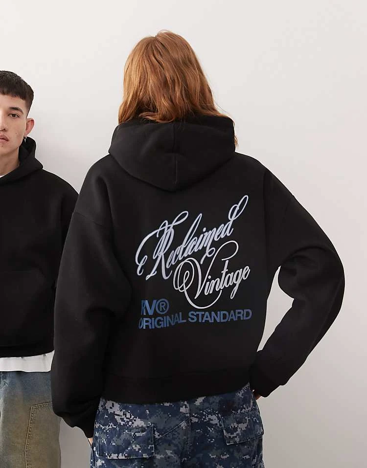 Reclaimed Vintage Unisex Oversized Hoodie With Back Graphic In Black For Unisex
