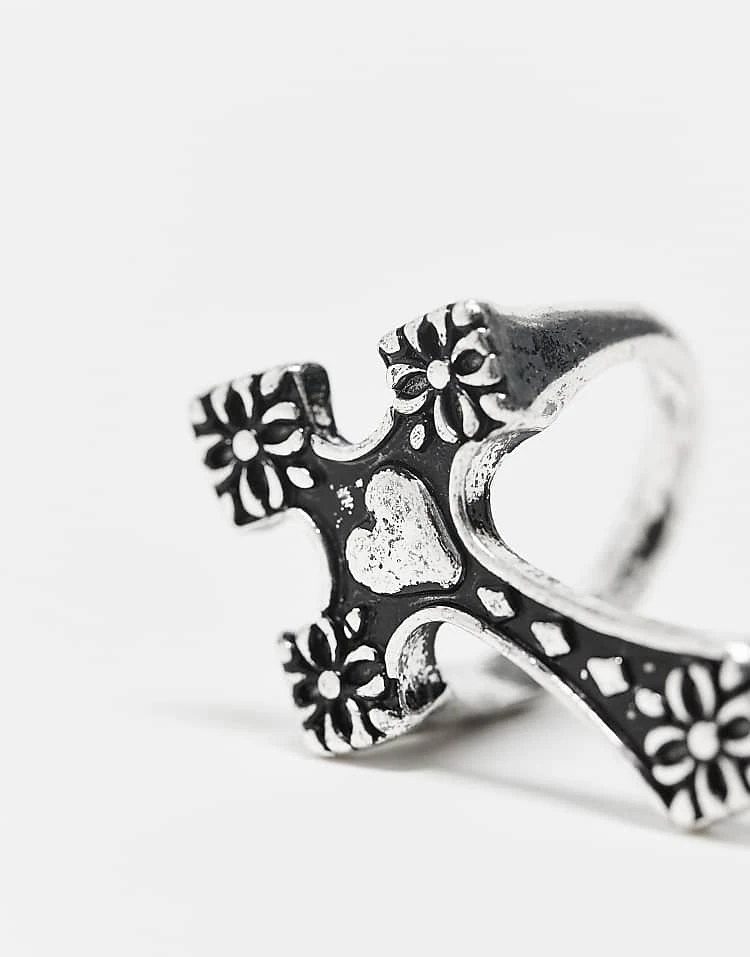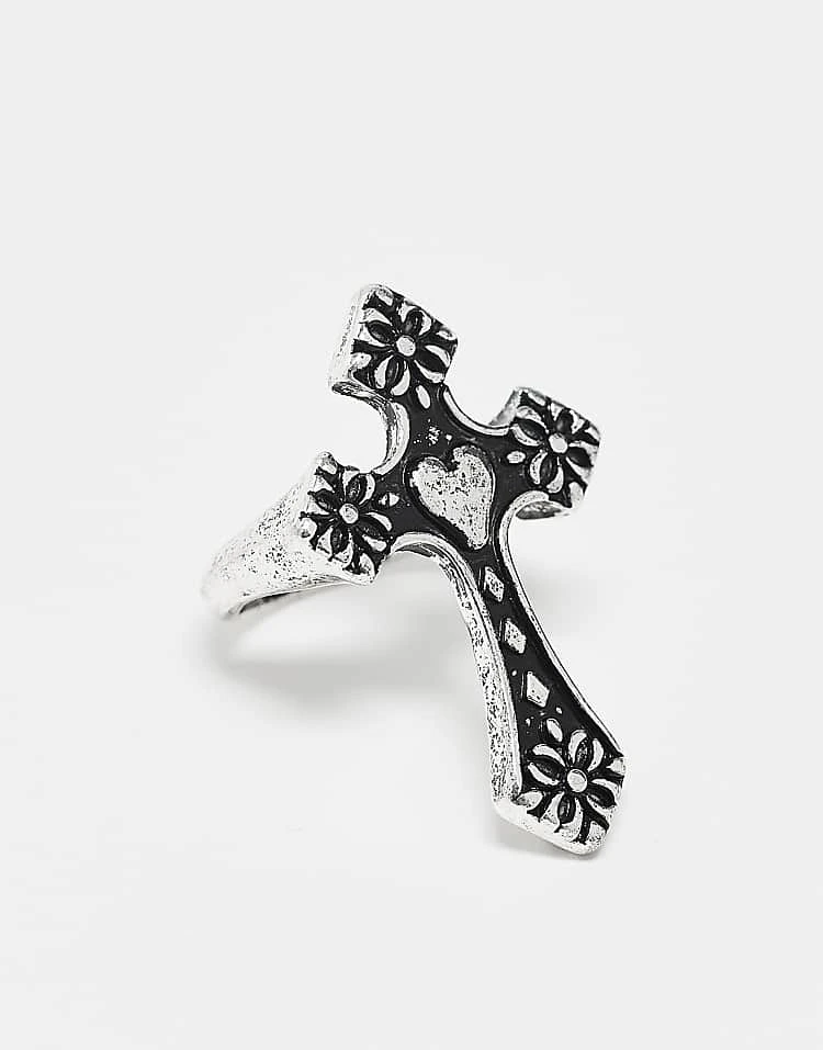 Reclaimed Vintage Unisex Ring With Heart Cross In Silver For Unisex